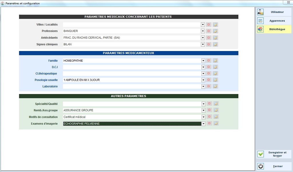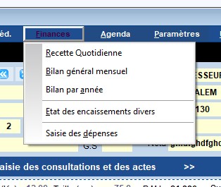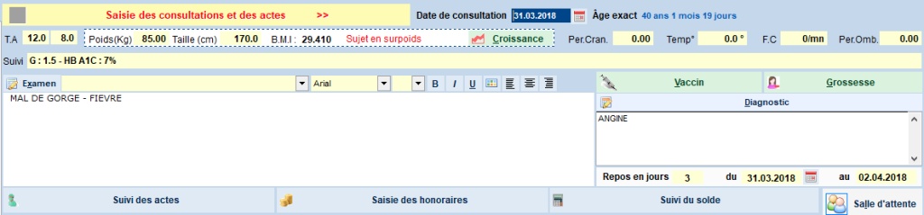 - La saisie d’ un éventuel arrêt de maladie, puis des honoraires réclamés au patient.