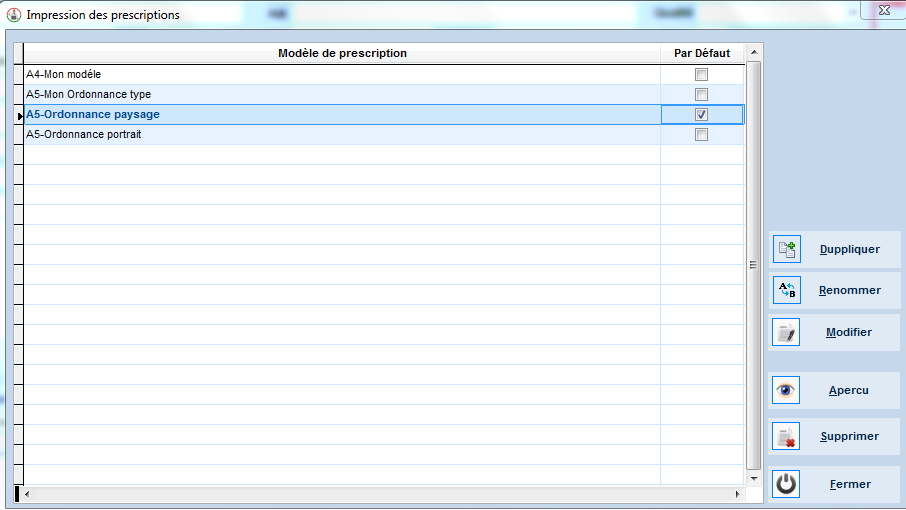 Prenons pour exemple les ordonnances, vous avez par défaut des modèles pré-paramétrés :