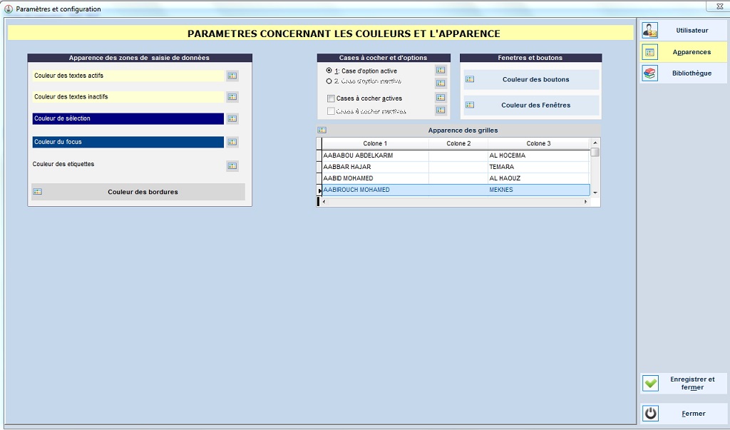 Ce formulaire permet de personnaliser l’apparence de WINMED.