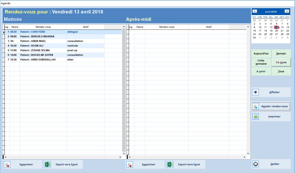 | Agenda: pour la gestion des rendez-vous | Statistiques: Formulaire de statistiques sommaires de l'activité de votre cabinet |