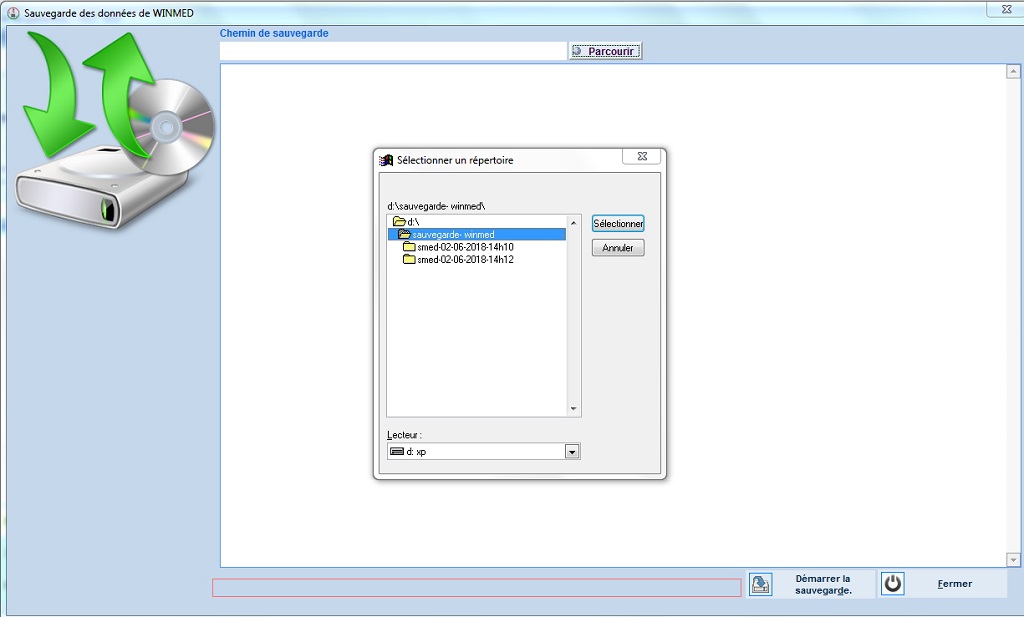 * Sauvegarde sur support amovible : permet de générer alors un fichier de sauvegarde du type SMED-02-06-2018-14h10 (c'est-à-dire sauvegarde du 02 juin 2018-14h10