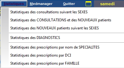 La barre de menu de WINMED vous permet d’accéder à plusieurs fonctionnalités en cliquant sur l’icône