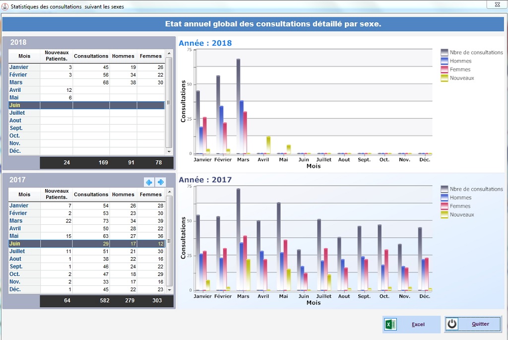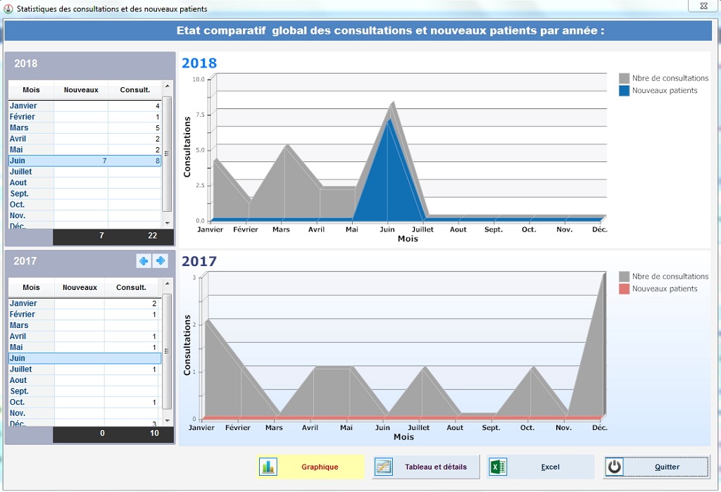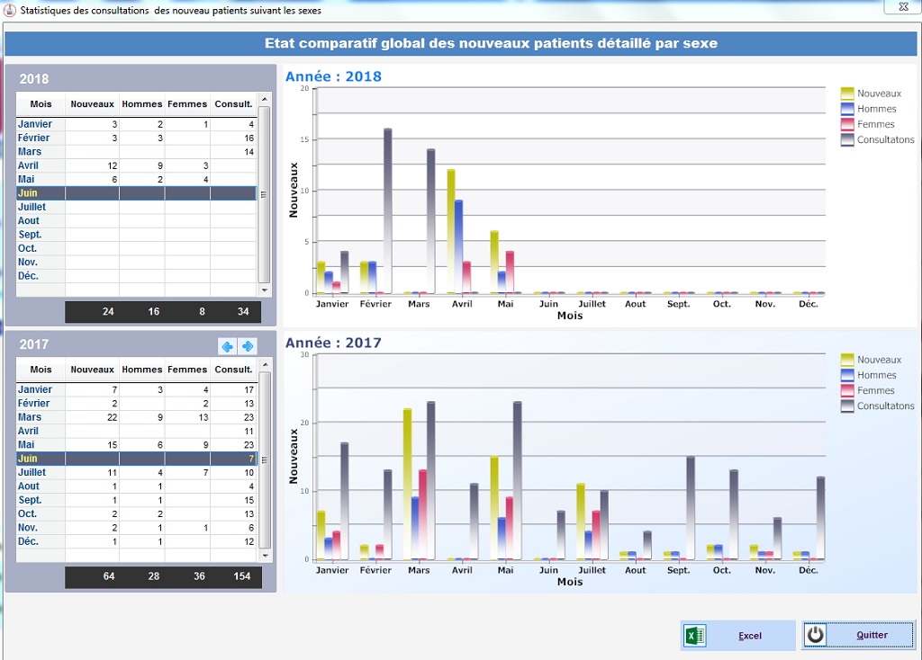 * Statistiques des CONSULTATIONS et des NOUVEAUX patients.