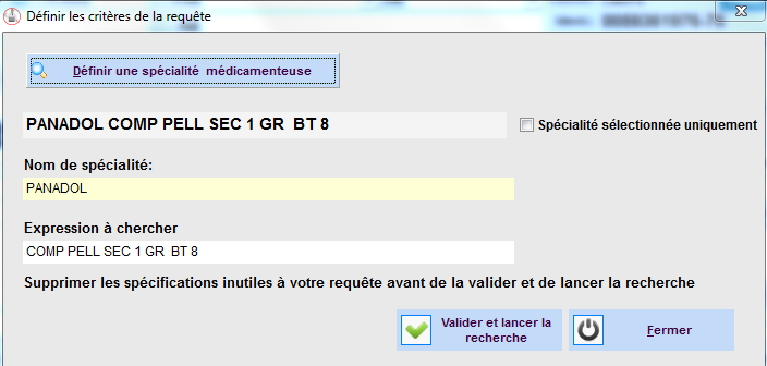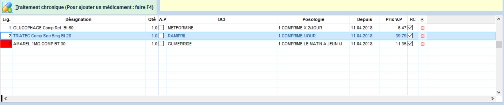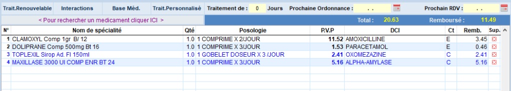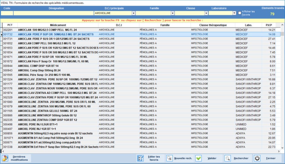 sélectionnez le médicament de votre choix en tapant le début de sa dénomination puis F9 pour le sélectionner.