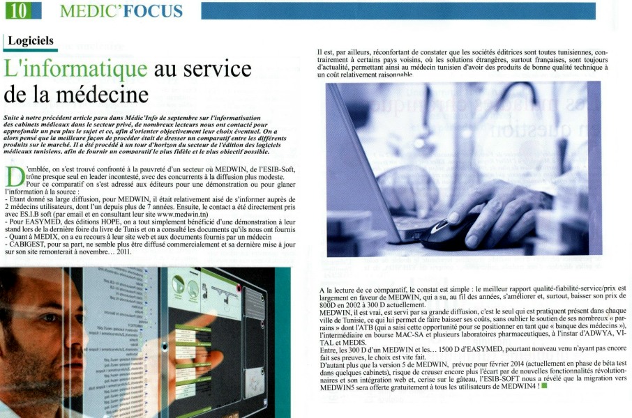 ARTICLE DE "MEDIC INFO" DE NOVEMBRE 2013