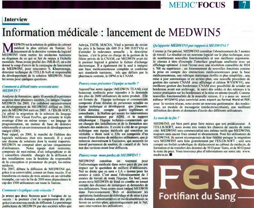 ARTICLE DE "MEDIC INFO" DE JUILLET 2013