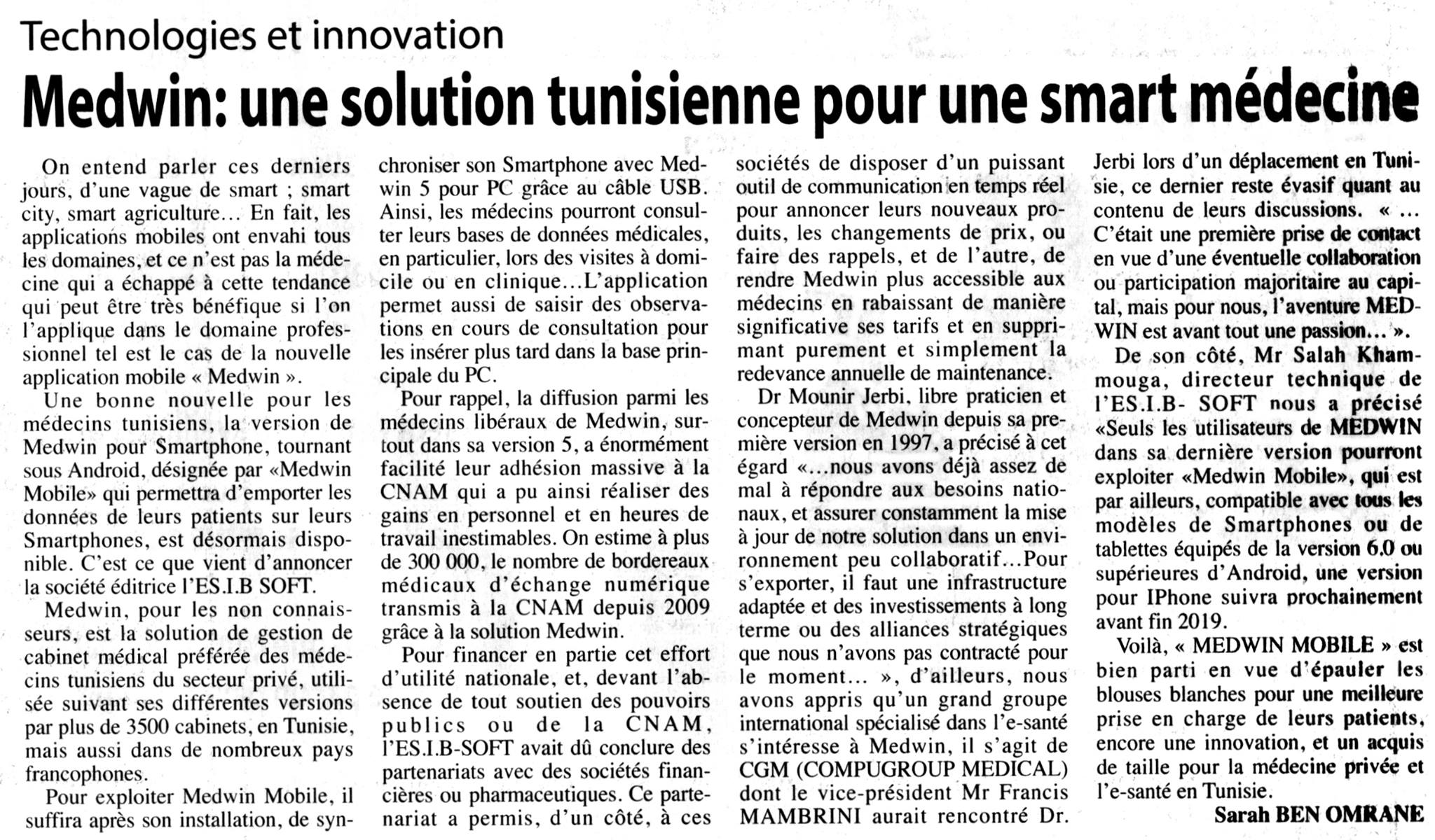 ARTICLE DE "MEDIC INFO" DE Juin 2015
